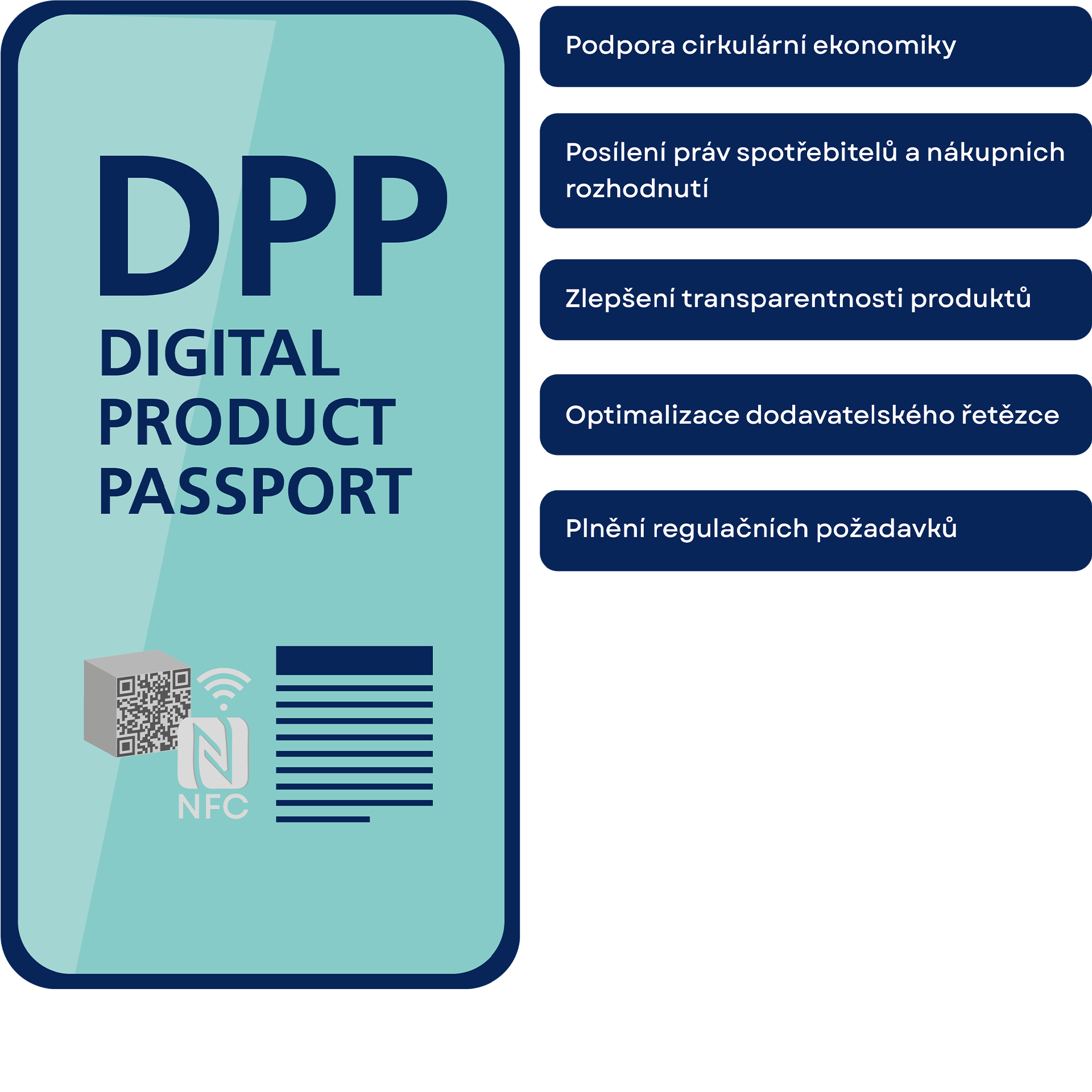 název: DPP obsahuje informace o všech materiálech, recyklaci atd. a soustřeďuje všechny důležité údaje o výrobku.